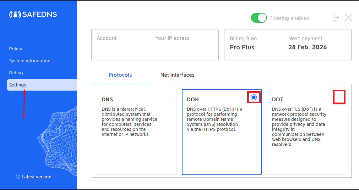 Using DoH/DoT in the SafeDNS Agent
